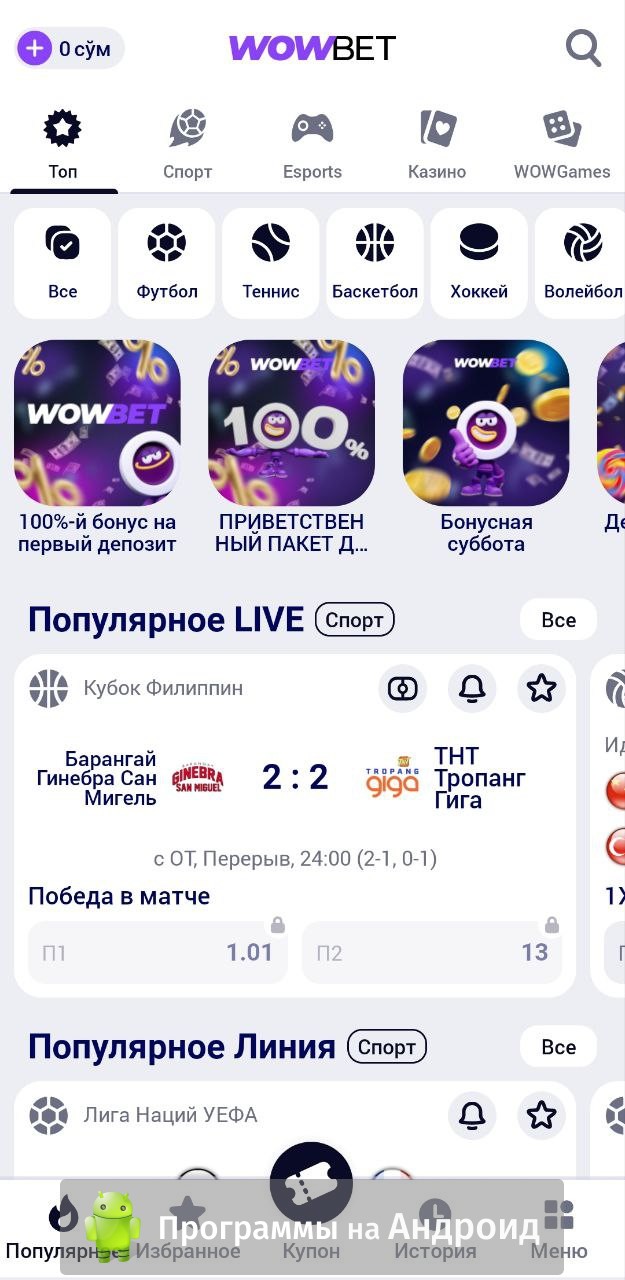 Рекомендуем указать данный промокод при регистрации, по нему максимальная сумма бонуса на первый депозит для игроков будет повышена на 150%.Скачать бесплатно WowBet (Вов Бет) 2026 на Андроид